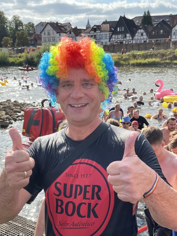 Mal was Fröhliches: An einem der letzten Samstage fand das vierte Weserschwimmen statt. Die DLRG Minden um Volker Zoerb organisiert dieses Event mittlerweile jährlich. Was für ein Kraftakt. Viele tragen dazu bei: die THW und DRK-Ortsverbände, der SV 1860, Feuerwehr, Bundeswehr und die Stadtverwaltung. Dieses Zusammenwirken ist keine Selbstverständlichkeit. Aber hier vor Ort in Minden kennen sich die Akteure, wissen von ihrem Einsatz. Ihre Jugendarbeit funktioniert und aktiviert für so eine Veranstaltung Helferinnen und Helfer. Ohne sie funktioniert das nicht. Uns so kamen erstmals über 800 Weserschwimmerinnen und -schwimmer zusammen, ich mittendrin. Passend zur gleichzeitig stattfindenden CSD-Parade habe ich eine Regenbogen-Perücke als Statement getragen. „Toll, dass sie das machen“, „super Idee“, „Minden ist bunt“, waren so die Kommentare. Aber vor allem hatten diese Hunderte und ich wieder ein fantastisches Gemeinschaftserlebnis. Jeder und jede, wie er und sie ist, stieg ins Wasser, begleitet vom Schutz der DLRG und des THW und der tollen Band „Wesermusikanten“. Und in dieser Gemeinschaft haben wir Minden einfach genossen, von der Weser aus, unter den Brücken entlang, unsere Stadt aus einer der schönsten Perspektiven gesehen. Das ist es, wenn ich sage, wir brauchen Gemeinschaftsmomente, -feste und -orte, um unser Zusammenleben stark zu machen. Dazu können alle beitragen und die Initiative und die Organisation liegt bei starken Aktiven. Das ist Minden, hier unser Minden an der Weser.